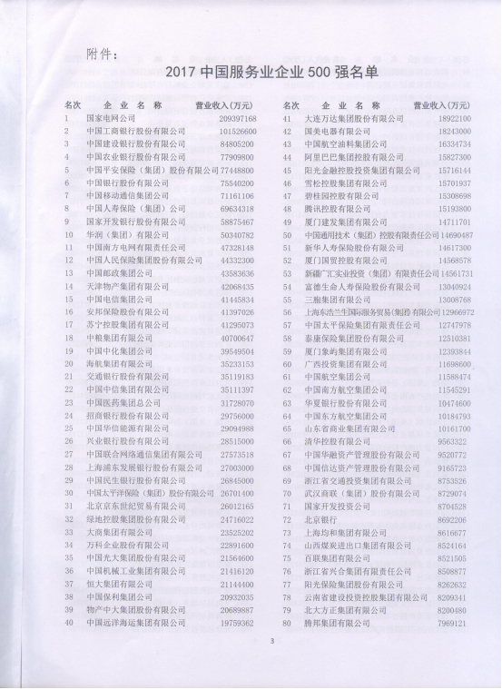 2017年,青海物產(chǎn)在省委、省政府、省國(guó)資委的堅(jiān)強(qiáng)領(lǐng)導(dǎo)和親切關(guān)懷下,在省屬相關(guān)委廳局的熱情幫助和大力支持下,牢牢把握"穩(wěn)中求進(jìn)、改革創(chuàng)新、又好又快"的原則,搶抓機(jī)遇,攻堅(jiān)克難,扎實(shí)工作,保持了營(yíng)收穩(wěn)步增長(zhǎng)的良好態(tài)勢(shì),集團(tuán)再次入圍"2017中國(guó)服務(wù)業(yè)企業(yè)500強(qiáng)",排名第397位。