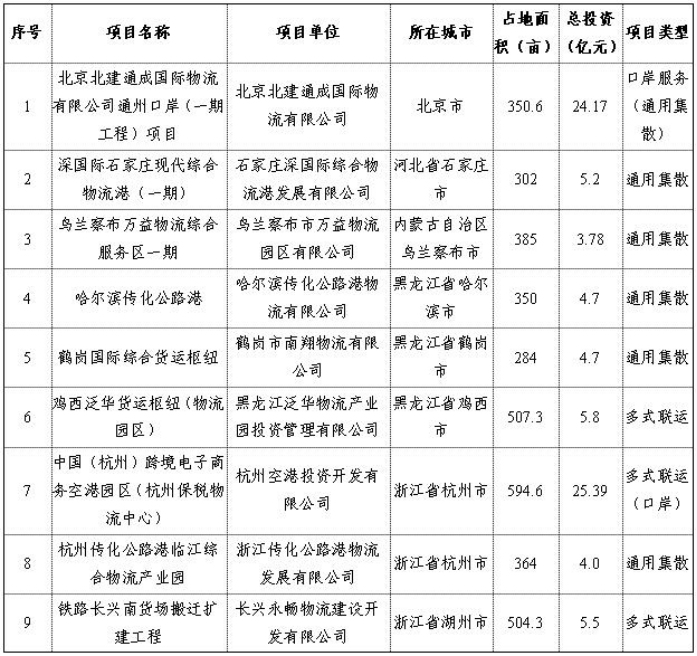 為促進(jìn)物流業(yè)"降本增效",加快貨運(yùn)樞紐(物流園區(qū))建設(shè),我部委托咨詢?cè)u(píng)估單位對(duì)申報(bào)2019年投資補(bǔ)助資金的貨運(yùn)樞紐(物流園區(qū))項(xiàng)目進(jìn)行了審核。經(jīng)統(tǒng)籌研究,按照《交通運(yùn)輸部貨運(yùn)樞紐(物流園區(qū))投資補(bǔ)助項(xiàng)目管理辦法(暫行)》相關(guān)要求,現(xiàn)將擬安排投資補(bǔ)助資金的項(xiàng)目予以公示。公示時(shí)間:2018年9月20日至2018年9月27日;如有異議,請(qǐng)于2018年9月28日前與交通運(yùn)輸部綜合規(guī)劃司聯(lián)系。聯(lián)系電話:010-65293196;郵箱地址:zgc@mot.gov.cn;聯(lián) 系 人:劉 凌;附 件:擬安排投資補(bǔ)助資金貨運(yùn)樞紐(物流園區(qū))項(xiàng)目表