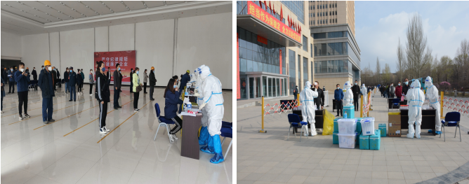 在疫情防控緊要時期,主動配合落實核酸檢測等防控措施。多頻次聯(lián)系大通縣疫情防控指揮部及北川園區(qū)管委會,于4月14日、4月17日開展兩輪核酸檢測行動。為做好本次核酸檢測工作,公司黨政領(lǐng)導(dǎo)班子高度重視,科學(xué)謀劃,與相關(guān)單位溝通銜接后,連夜加班在園區(qū)空曠區(qū)域設(shè)置檢測點,方便核酸檢測工作;同時根據(jù)公司生產(chǎn)經(jīng)營實際,公司財務(wù)審計部、實業(yè)開發(fā)部人員、供銷部負(fù)責(zé)同志協(xié)同公司所屬各單位,密排人員在崗、離崗、休班情況,提前編制完成人員信息統(tǒng)計及分組排序表;歷經(jīng)全員密切配合,兩次共采集核酸檢測樣本2093個,保證了篩查應(yīng)檢盡檢、無一遺漏,及時排除風(fēng)險。
