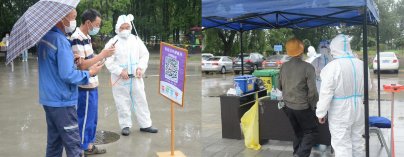 清晨,在綿綿細(xì)雨中園區(qū)新一輪區(qū)域核酸檢測有序推進(jìn),核酸檢測點(diǎn)搭起遮雨帳篷,公司廣大黨員干部奮勇?lián)?dāng)沖鋒在前,維護(hù)秩序、進(jìn)行掃碼,醫(yī)護(hù)人員快速有效地采集核酸。大家上下同心、通力配合,有序高效的進(jìn)行核酸檢測,僅用了三個(gè)多小時(shí)就全面完成了園區(qū)人員核酸采樣工作。據(jù)統(tǒng)計(jì),本次核酸檢測共有1103名干部職工及外租單位人員參加,檢測結(jié)果全部為陰性。