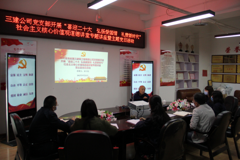 (省三建公司 訊 韓毓、王文杰/文 韓毓/攝 )2022年是黨的二十大召開之年,是落實省第十四次黨代會精神開局之年。為持續(xù)鞏固拓展黨史學(xué)習(xí)教育成果,加強精神文明建設(shè),深化民族團結(jié)進(jìn)步宣傳教育和感恩教育,講好各族民族守望相助、團結(jié)奮進(jìn)的國企故事,積極培育和踐行社會主義核心價值觀,9月21日,公司黨支部開展“喜迎二十大 弘揚愛國情 禮贊新時代”社會主義核心價值觀道德講堂專題講座暨主題黨日活動。