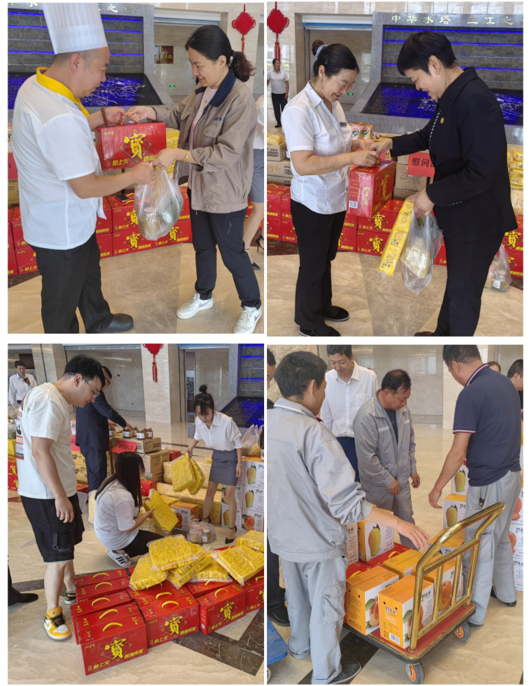 活動中,公司領(lǐng)導(dǎo)班子成員將裝有涼茶、飲品、綠豆等防暑降溫物資的“清涼禮包”,送到一線職工手中,叮囑大家在工作中強化安全意識,合理安排作息時間,做好防暑降溫措施,增強自我保護意識,確保高溫期間安全工作。
