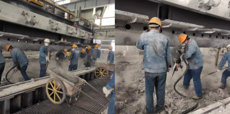 電解槽大修如同外科手術(shù),需在有限停槽期內(nèi)完成數(shù)個(gè)部件的拆解、檢測與更換。延誤一天,意味著效益的損失。為搶進(jìn)度,電解車間將人員分成四班倒,可實(shí)際干起來,所有人都不約而同選擇了“連軸轉(zhuǎn)”。技術(shù)員小王剛下白班,見夜班人手緊張,抓起手套又鉆進(jìn)了槽底:“早一天啟動(dòng),就能多增加1噸多的鋁液!”槽頂排風(fēng)機(jī)的嗡鳴聲中,安全員老周扯著嗓門喊:“防護(hù)面罩戴緊!粉塵吸進(jìn)肺里要命!”他手里的強(qiáng)光手電掃過槽底,光束里翻騰的塵埃像一場無聲的雪暴。十幾米長的電解槽如同被解剖的巨獸,槽殼敞露,陰極鋼棒上斑駁的電解質(zhì)結(jié)痂仿佛鱗片,記錄著它連續(xù)運(yùn)轉(zhuǎn)10多年的疲憊。這是大修的關(guān)鍵戰(zhàn)役—— 7天內(nèi),必須讓電解槽“復(fù)活”。