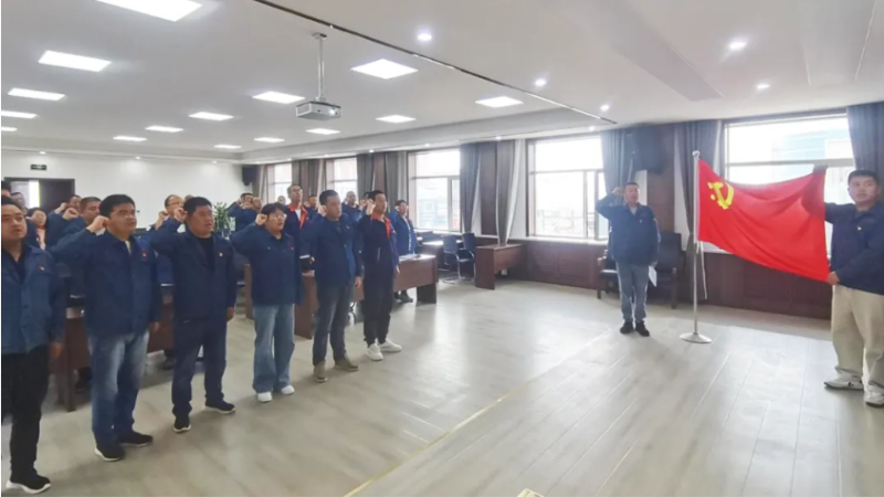 觀影結(jié)束后,新老黨員整齊列隊(duì),面向鮮紅的黨旗,高舉右拳莊嚴(yán)宣誓。新黨員目光堅(jiān)定,以擲地有聲的誓言抒發(fā)著為共產(chǎn)主義奮斗終身的堅(jiān)定信念;老黨員神情肅穆,在重溫入黨誓詞的過(guò)程中,回溯入黨初心,強(qiáng)化使命擔(dān)當(dāng)。